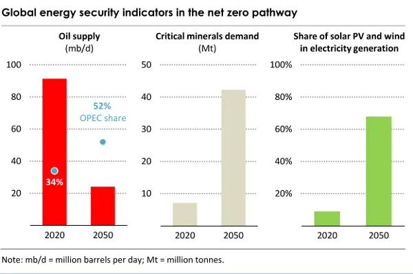 Nuove sfide in materia di sicurezza energetica dovranno essere affrontate sulla strada verso emissioni zero entro il 2050 e si aggiungeranno a quelle di vecchia data, nonostante il ruolo del petrolio e del gas diminuirà. La contrazione della produzione di petrolio e gas naturale avrà implicazioni di vasta portata per tutti i paesi e le aziende che producono questi combustibili.
