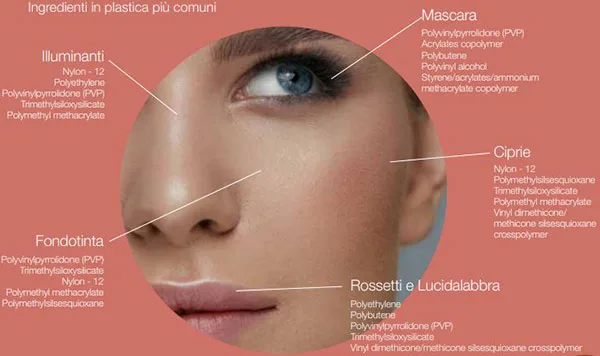 ingredienti presenti nei prodottiDi queste solo il Polyethylene ed il Nylon-12 sono materie plastiche in forma solida. Il dato più allarmante che spicca tra i risultati di questa parte di indagine è che nei prodotti applicati su occhi e labbra le materie plastiche (solide e non) sono più frequenti.