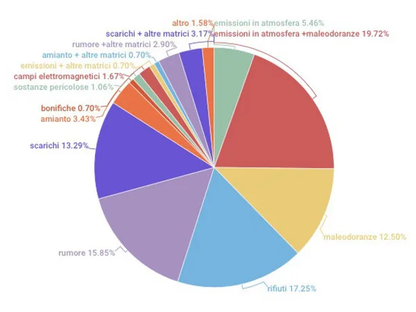 Le segnalazioni che riguardano emissioni in atmosfera e maleodoranze ammontano a 428, seguite da quelli in cui si evidenziano problematiche legate
