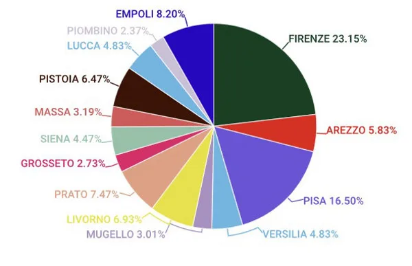 Il territorio da cui proviene il maggior numero di segnalazioni è quello corrispondente alla provincia di Firenze (Dipartimento di Firenze, Empoli e Settore Mugello), in questo ambito territoriale il numero di esposti ammonta a 377. Il territorio della provincia di Pisa, invece, fa registrare 181 segnalazioni di cittadini, seguito da quello della provincia di Lucca (Dipartimento di Lucca e Servizio della Versilia – Massaciuccoli) con 106. Infine il territorio provinciale di Livorno (Dipartimento di Livorno e Piombino) raggiunge un numero di segnalazioni pari a 102. Tutti gli altri si attestano su un numero  di segnalazioni inferiore a 100.