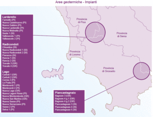 Tutta la Toscana al di sotto dell’Arno, a sud, è interessata da un’anomalia termica. A Pisa c’è un pozzo, perforato alla fine degli anni ‘90, che a 650 mt ha trovato fluidi di acqua calda a 50 gradi e sotto la città c’è un acquifero che ha una temperatura tra i 25-26 gradi. La Valdera, la Valdicecina e tutta la zona sud della Toscana sono caratterizzate da anomalia termica importante ma è Larderello “il vero fiore all’occhiello” della geotermia toscana, in questa zona, infatti, come accennato sopra, è presente almeno un plutone in via di raffreddamento. Altra zona interessante è quella dell’Amiata, Pian Castagnaio e Bagnore dove c’è un’anomalia termica molto importante legata ad una vecchia camera magmatica del vulcano amiatino che ancora sta raffreddando, cede calore e innesca processi geotermici. Larderello e Monte Amiata sono due campi geotermici ad alta entalpia ma le potenzialità nella nostra regione sarebbero molto maggiori.